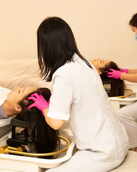 Our therapists’ skilled fingers trace paths across your scalp with gentle precision. This fusion of touch and mindfulness releases tension, benefiting your entire being. The Head Spa isn’t just a treatment; it’s an invitation to embrace pure tranquility.